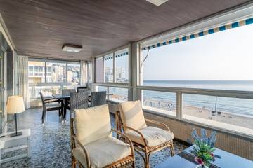 Mieszkanie w pierwszej linii plaży Levante, Benidorm, z bezpośrednim dostępem do plaży z tego samego budynku. Ma 1 sypialnię i może pomieścić 4 osoby. Apartament o powierzchni 70 m² przytulny i zewnętrzny, z panoramicznym widokiem na morze, zatokę i miasto. Posiada windę, dostęp do Internetu (wifi), klimatyzację w całym mieszkaniu, ogrzewanie pompą ciepła, wspólny sezonowy basen, kort tenisowy, parking zewnętrzny w tym samym budynku, 1 telewizor Smart TV, żelazko, suszarkę do włosów. Niezależna kuchnia indukcyjna wyposażona jest w lodówkę, pralkę, kuchenkę mikrofalową, zamrażarkę, zmywarkę, naczynia i sztućce, przybory kuchenne, ekspres do kawy Nespresso, toster, czajnik i sokowirówkę. - Przekazanie kluczy i zameldowanie odbywa się w naszym biurze zlokalizowanym przy Avenida del Mediterráneo 62, nazwa handlowa BenidormBooking, tuż przed kasynem. - Depozyt w wysokości 200 € kartą kredytową/debetową jest zatrzymywany jako depozyt lub w gotówce, jeśli nie. - Zameldowanie od 16:30 (w sezonie od 18:00) - Wymeldowanie przed 11:00h Numer rejestracji krajowej dla wynajmu krótkoterminowego ESFCTU00000302800005960300000000000000000000000VT-513829-A5 Położony jest 5 m od piaszczystej plaży "Playa de Levante", 25 m od supermarketu "Super 24", 25 m od dworca autobusowego "Parada Local", 25 m od restauracji, 50 m do stoku narciarskiego "Cable ski aquatic", 500 m do łaźni termalnych "Benicald...