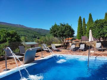 Aldea la Cabachuela to kompleks wiejskich apartamentów położony w regionie Las Hurdes. Naturalny raj, w którym odwiedzający mogą mieć kontakt z naturą i cieszyć się jej cudownymi krajobrazami i otoczeniem, nie zapominając o spokoju i komforcie. Las Hurdes to region, w którym można podkreślić piękno rzek, naturalnych basenów, strumieni i wodospadów dzięki krystalicznym wodom. Środowisko, które zachęca do odkrywania atrakcyjnych miejsc, w których można cieszyć się fauną i przyrodą w najczystszej postaci. Aldea la Cabachuela to wiejski kompleks złożony z 5 apartamentów o pojemności 26 osób. Te apartamenty są w pełni umeblowane i wyposażone we wszystkie udogodnienia, aby spędzić uroczy weekend. Wszystkie nasze domki oferują komfort, który sprawi, że spędzisz udany weekend, ponieważ wszystkie apartamenty posiadają łazienkę z ręcznikami, kominek, telewizor, kuchnię z (mikrofalówka, piekarniki, pralka, toster, płyta grzewcza). .), pościel, koce, żelazko, klimatyzacja, ogrzewanie, taras, grill, ogrody, salon dla grup i parking poza tym, że znajduje się nad rzeką, ze wspaniałymi widokami. Ciesz się śniadaniem i typowymi domowymi posiłkami regionu Wszystko to bez zapominania o tradycyjnej architekturze i pełnym poszanowaniu środowiska....